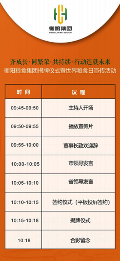 衡陽(yáng)糧食集團(tuán)揭牌儀式暨世界糧食日宣傳活動(dòng)時(shí)間及議程